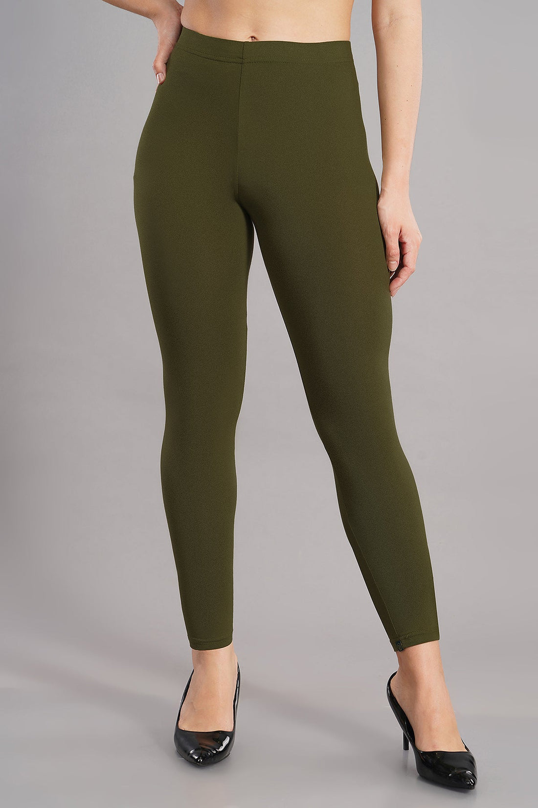 Shruthi Ankle Length Leggings with elasticated Waist||OLIVE GREEN