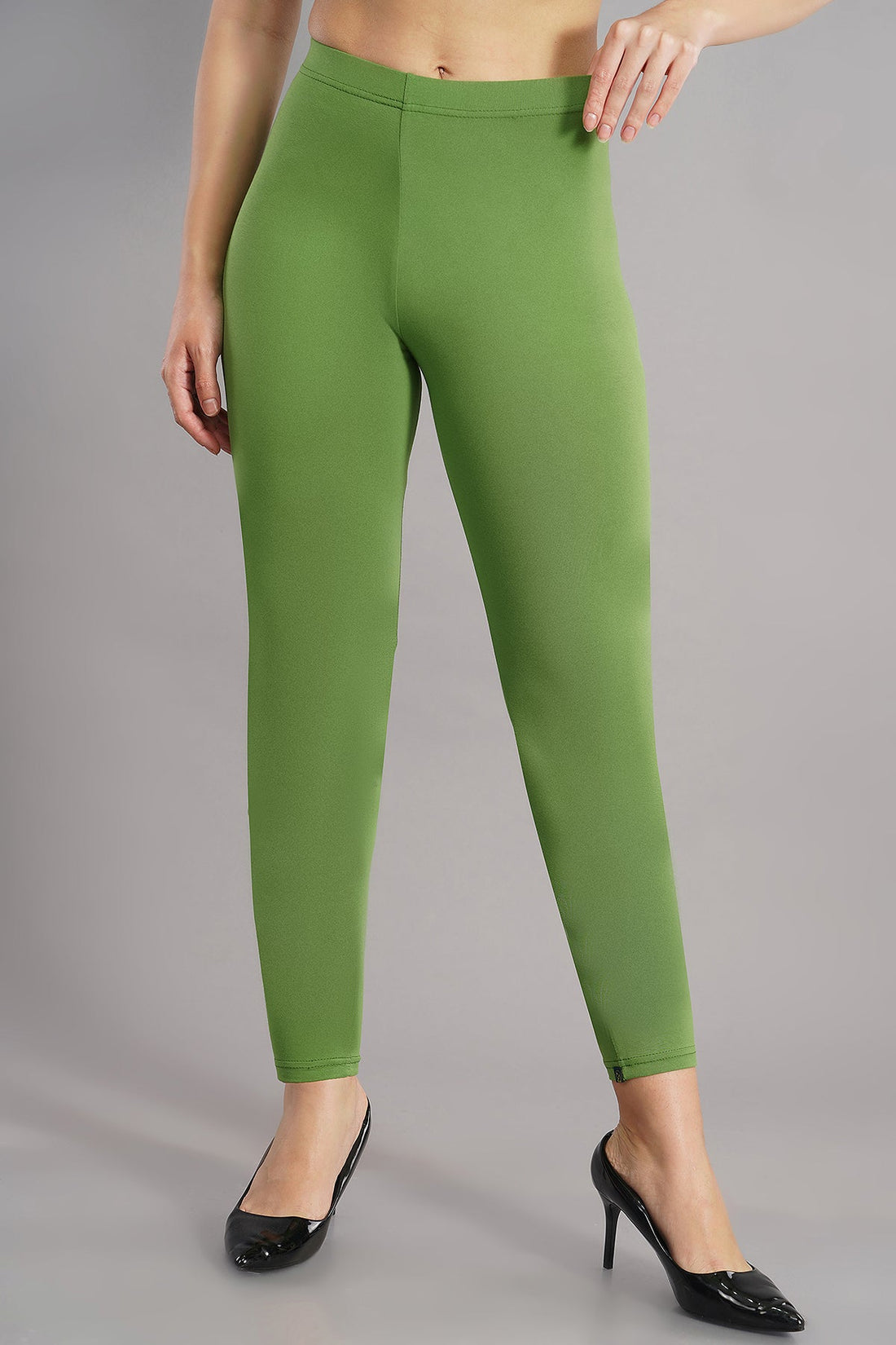 Shruthi Ankle Length Leggings with elasticated Waist||AIRFORCE GREEN