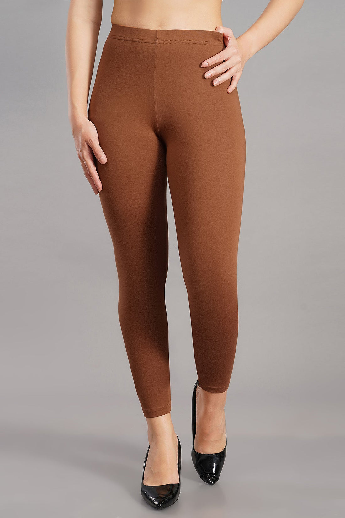 Shruthi Ankle Length Leggings with elasticated Waist||COFFEE BROWN