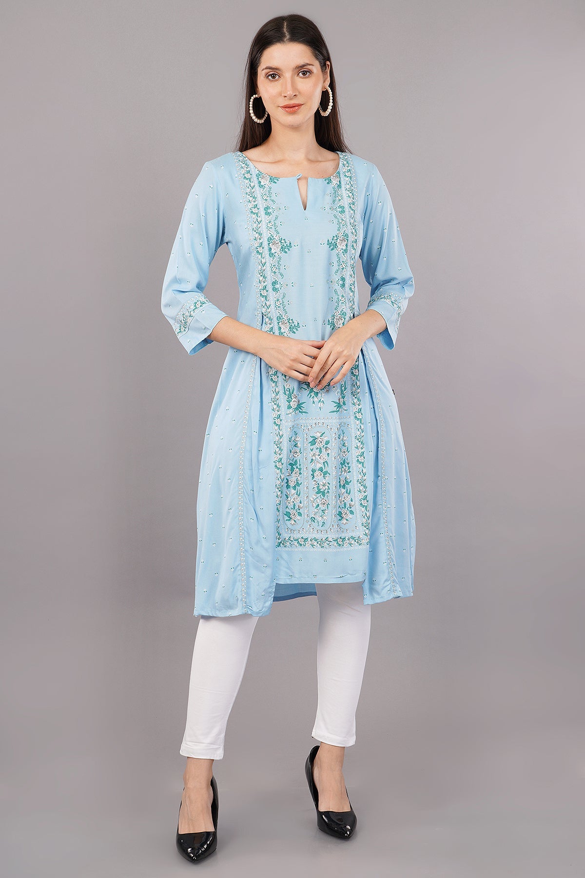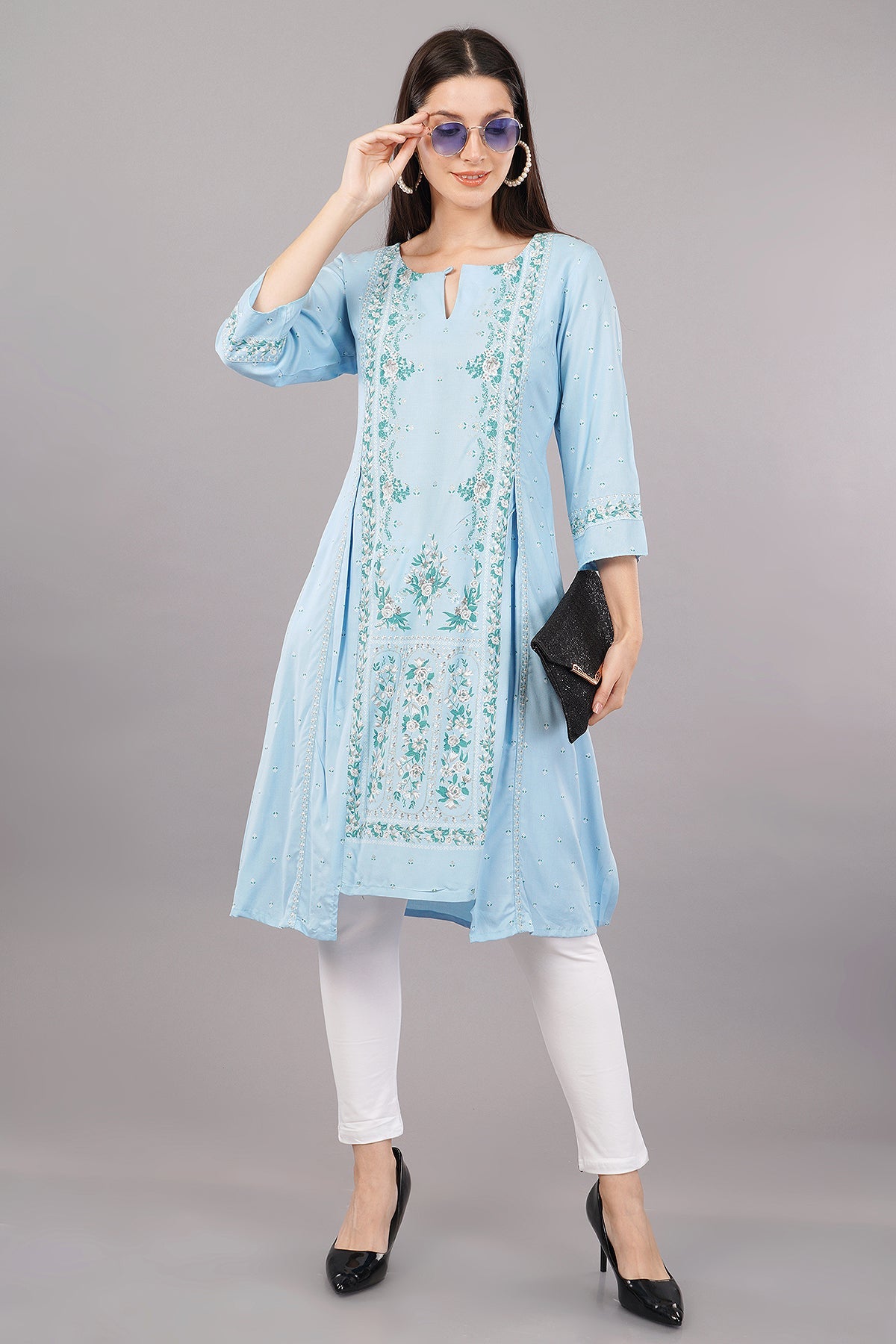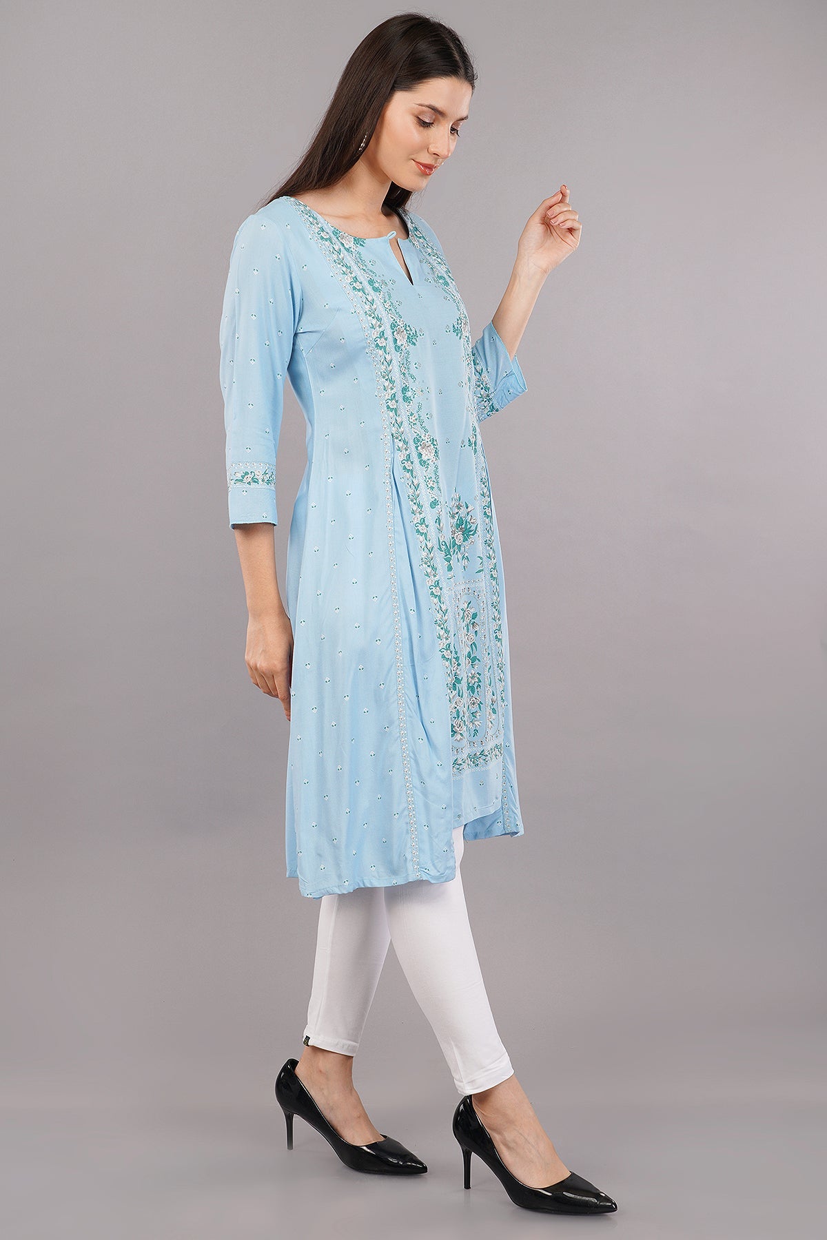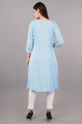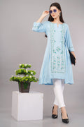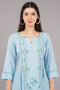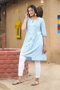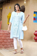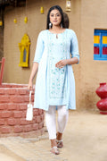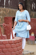 Blue Glitter Printed A-Line kurta
