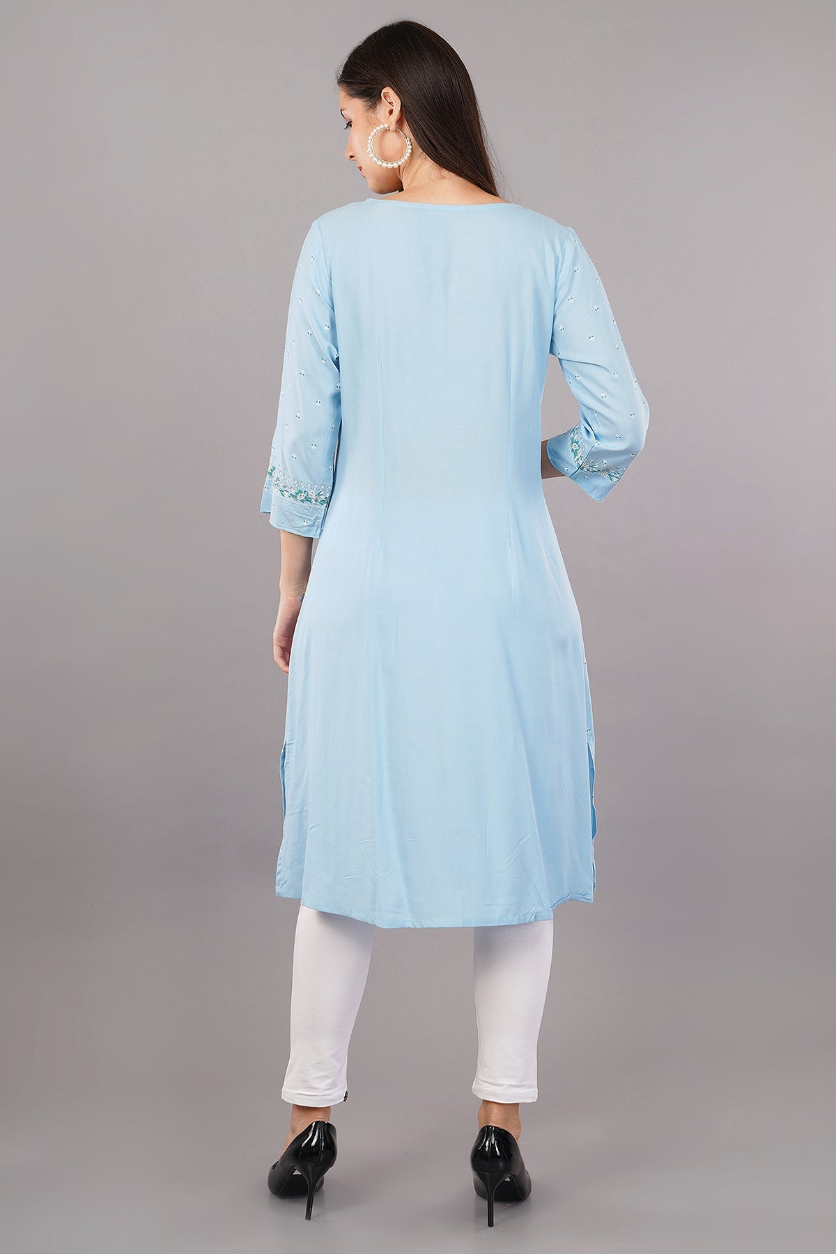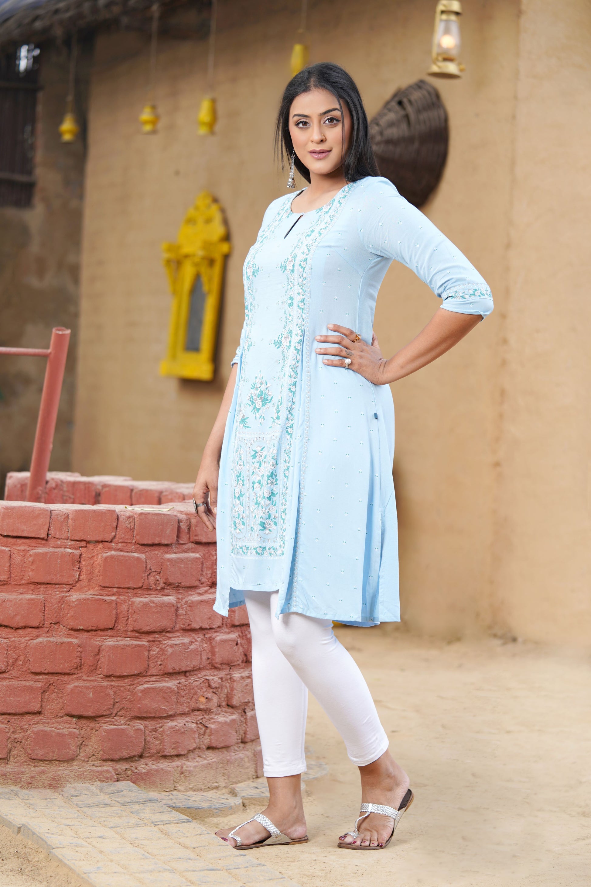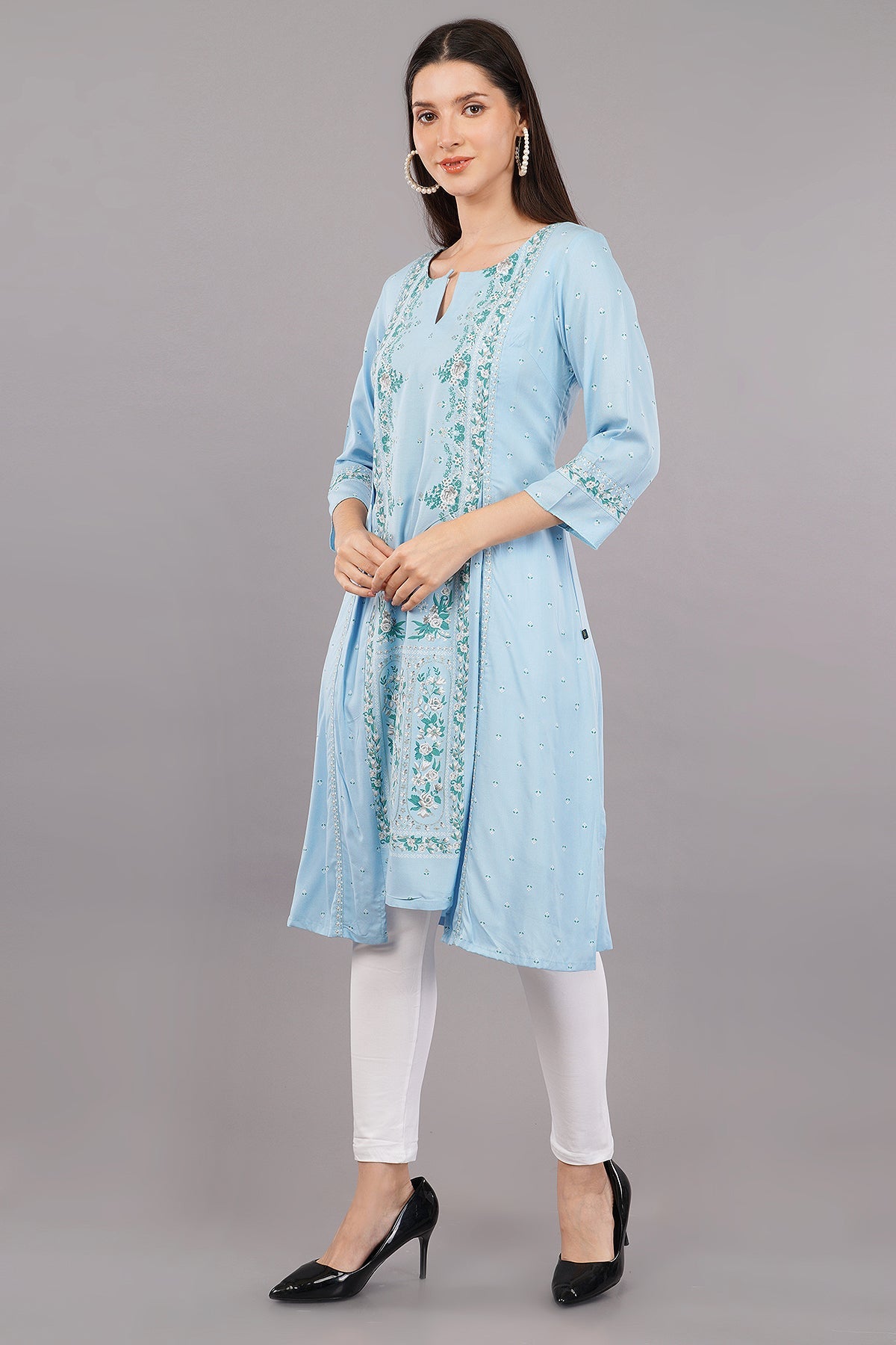 Blue Glitter Printed A-Line kurta