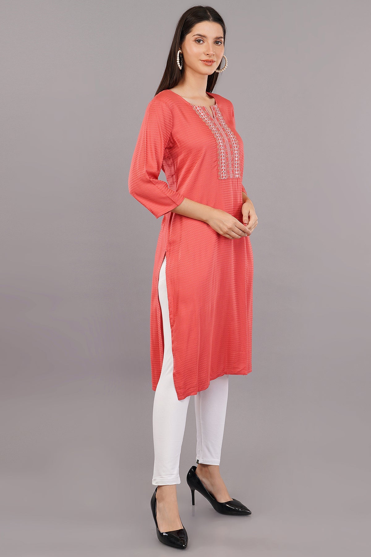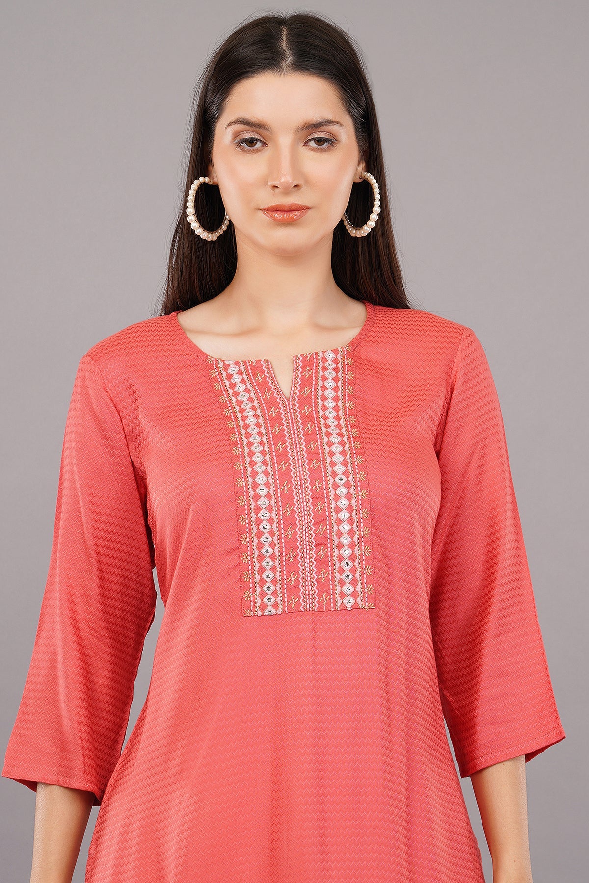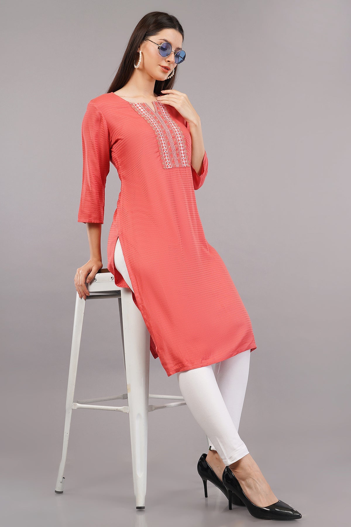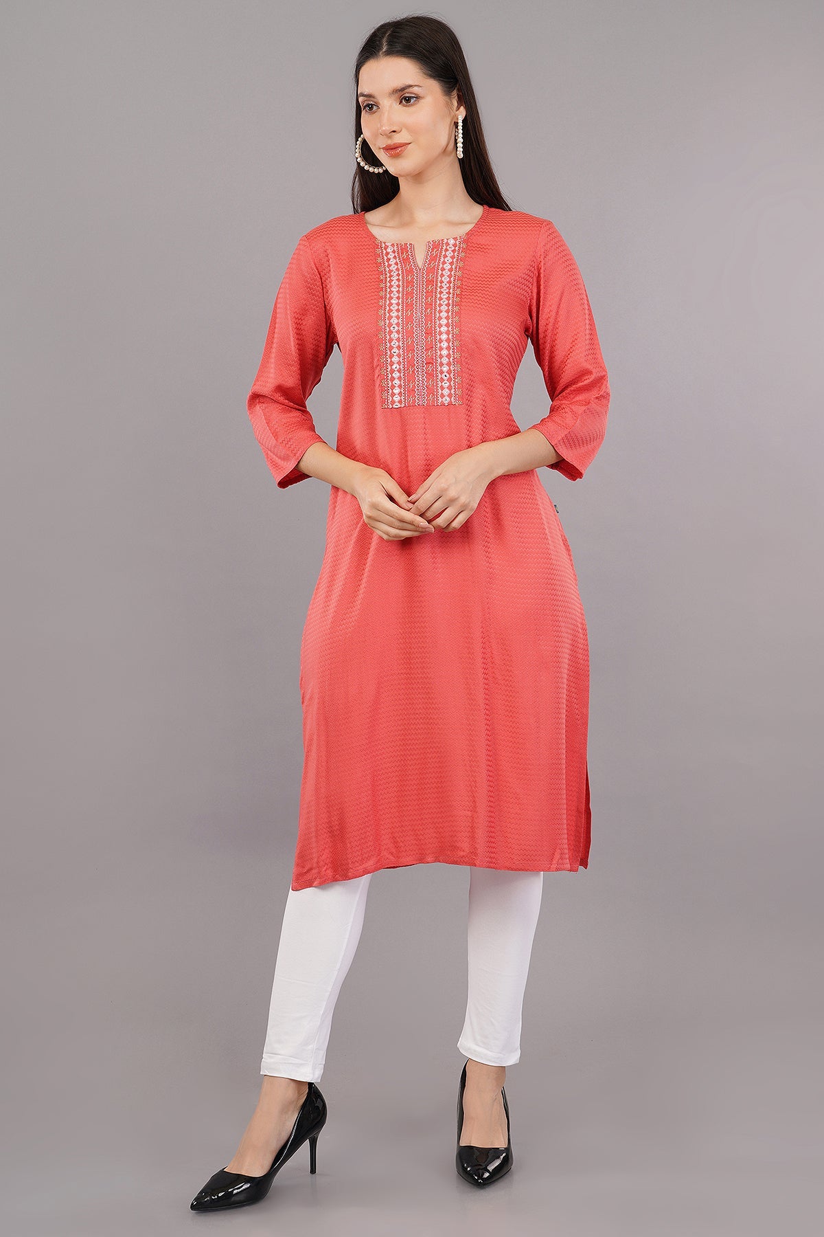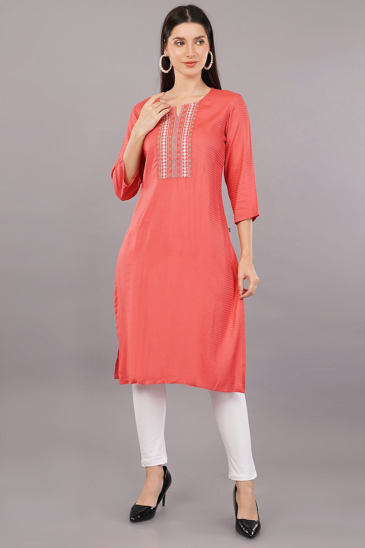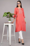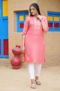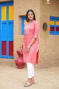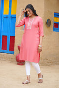 Embroidered Notched-Neck Straight Kurta