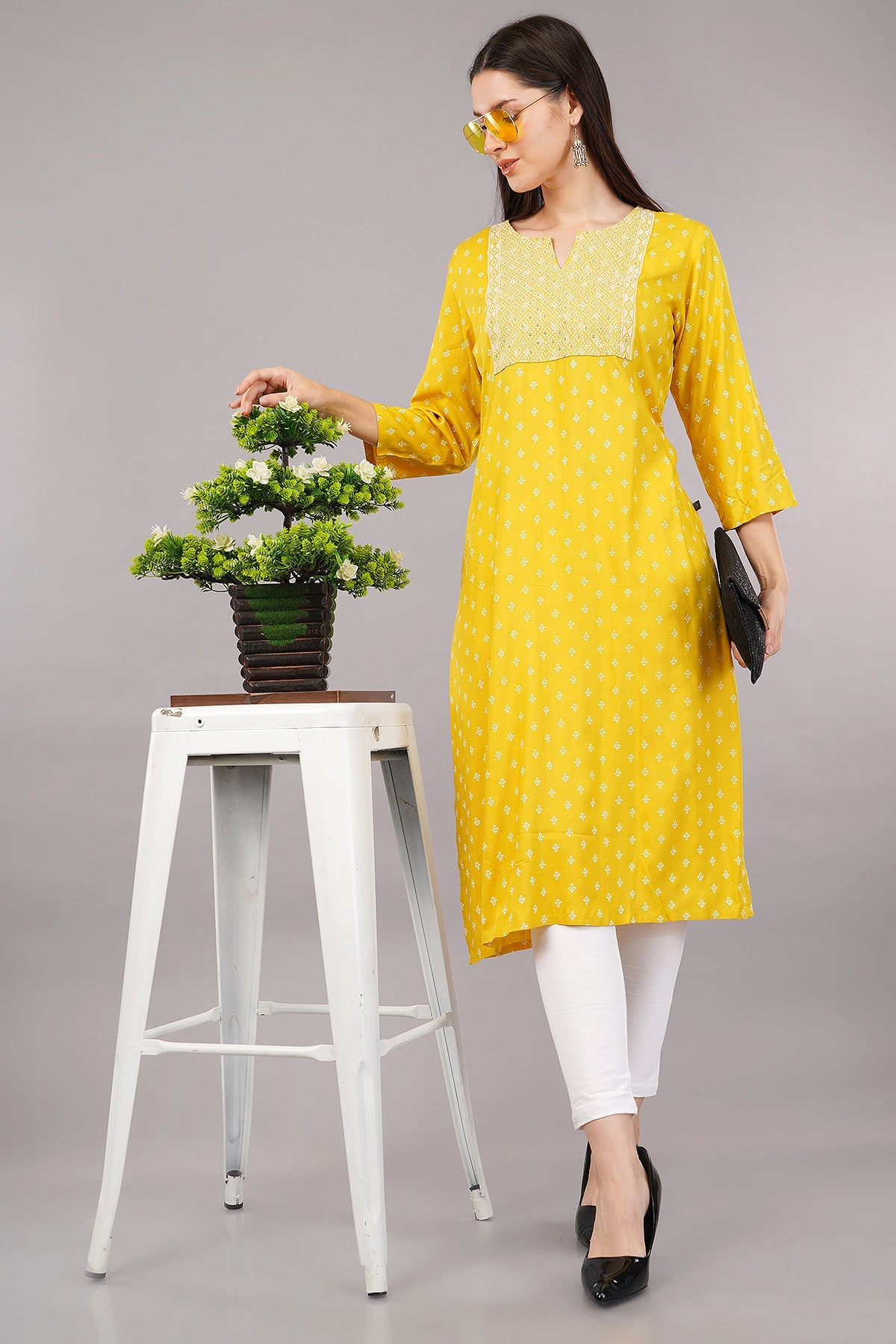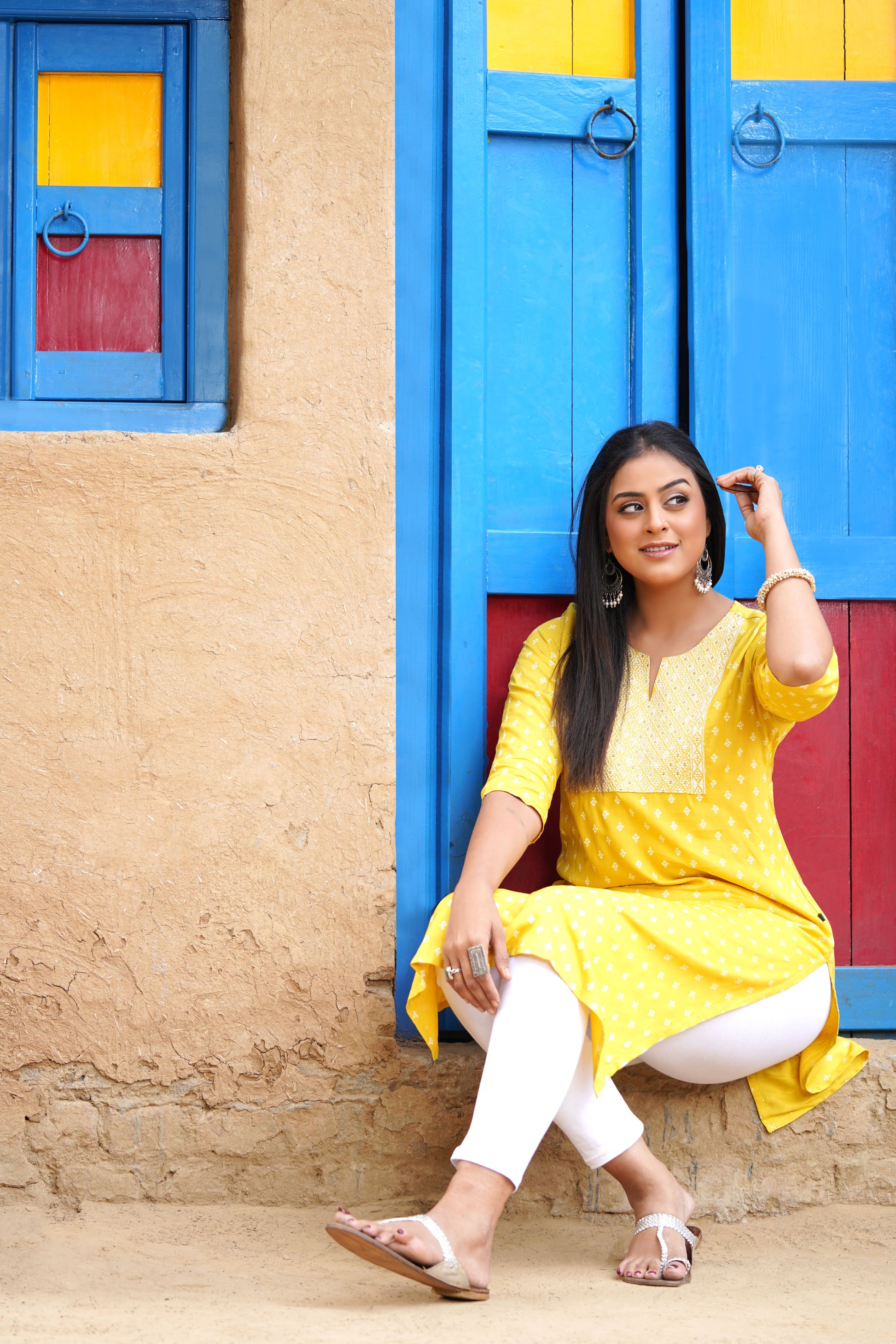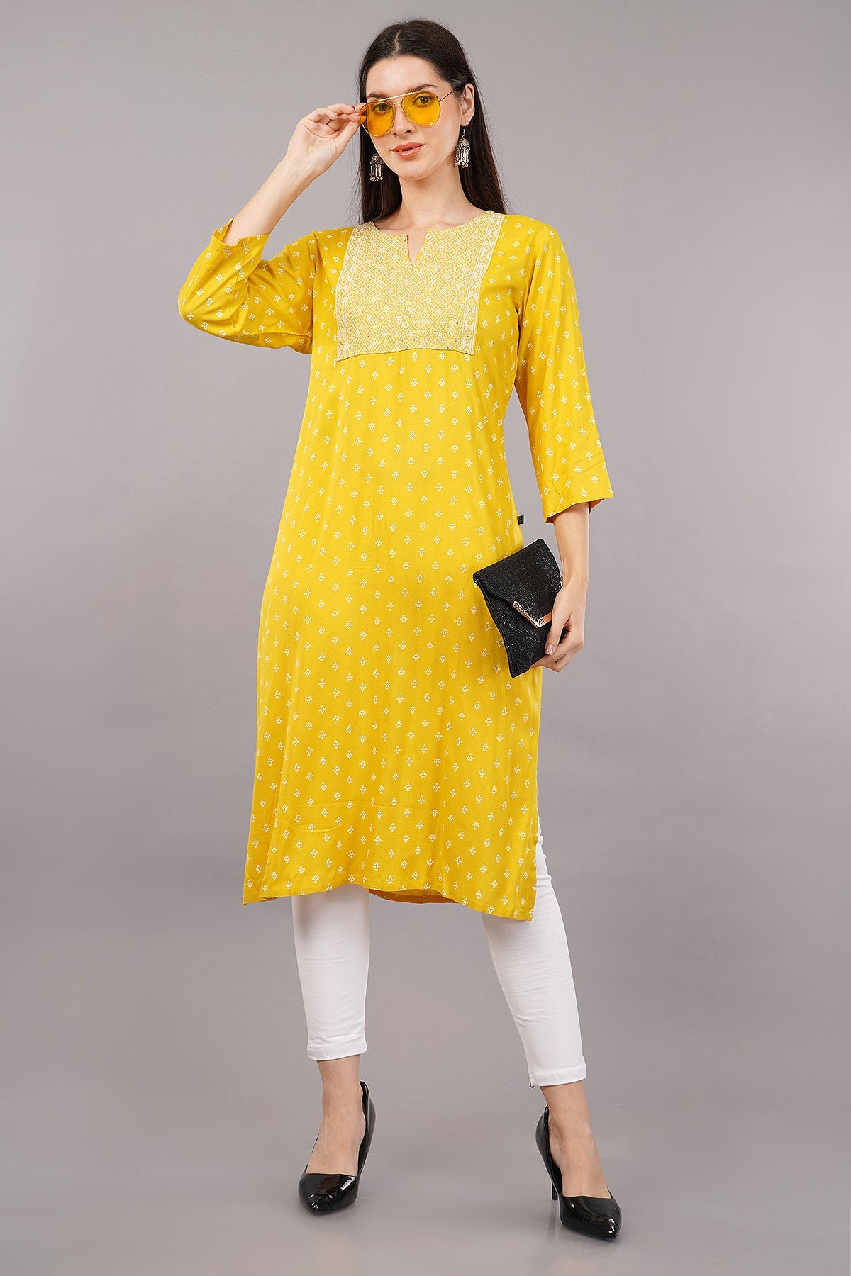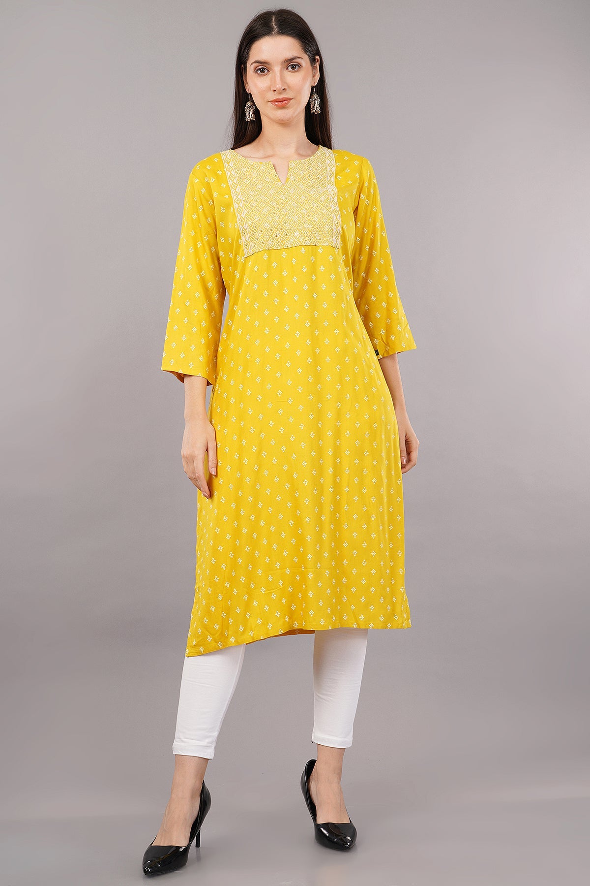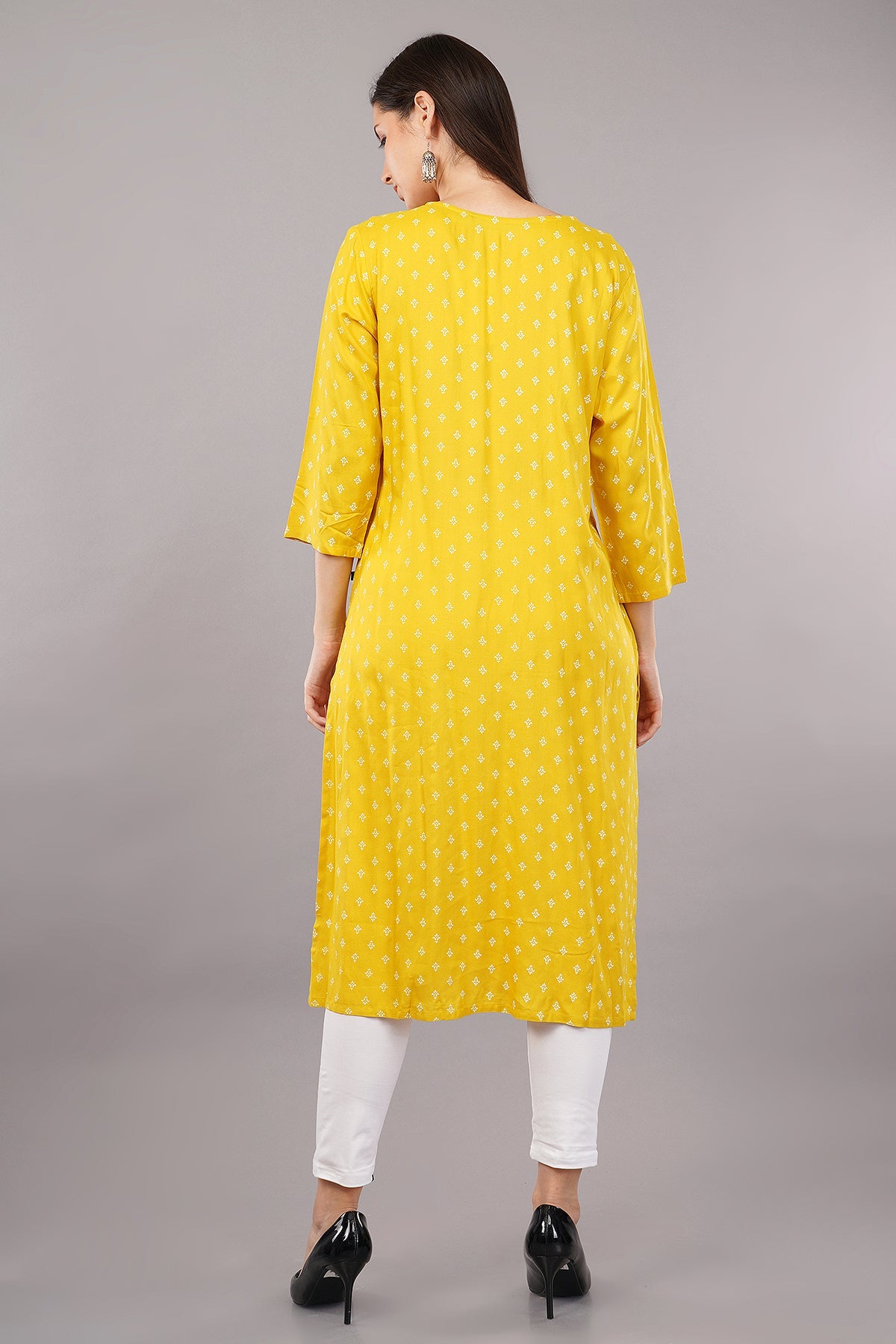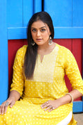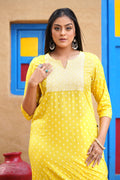 Printed Straight Kurta with Contrast Panel