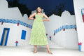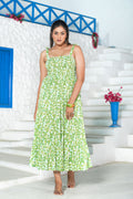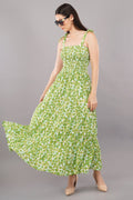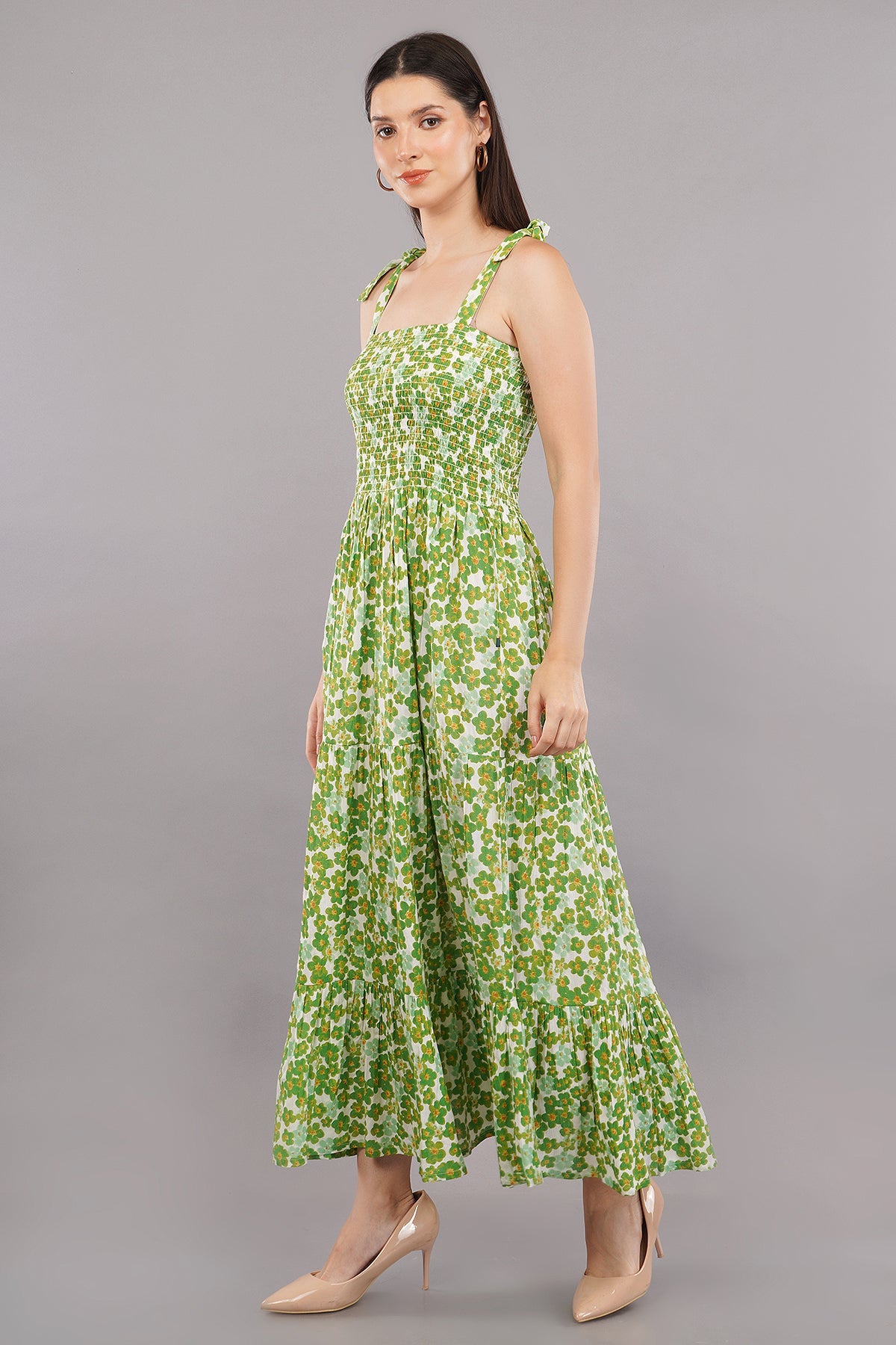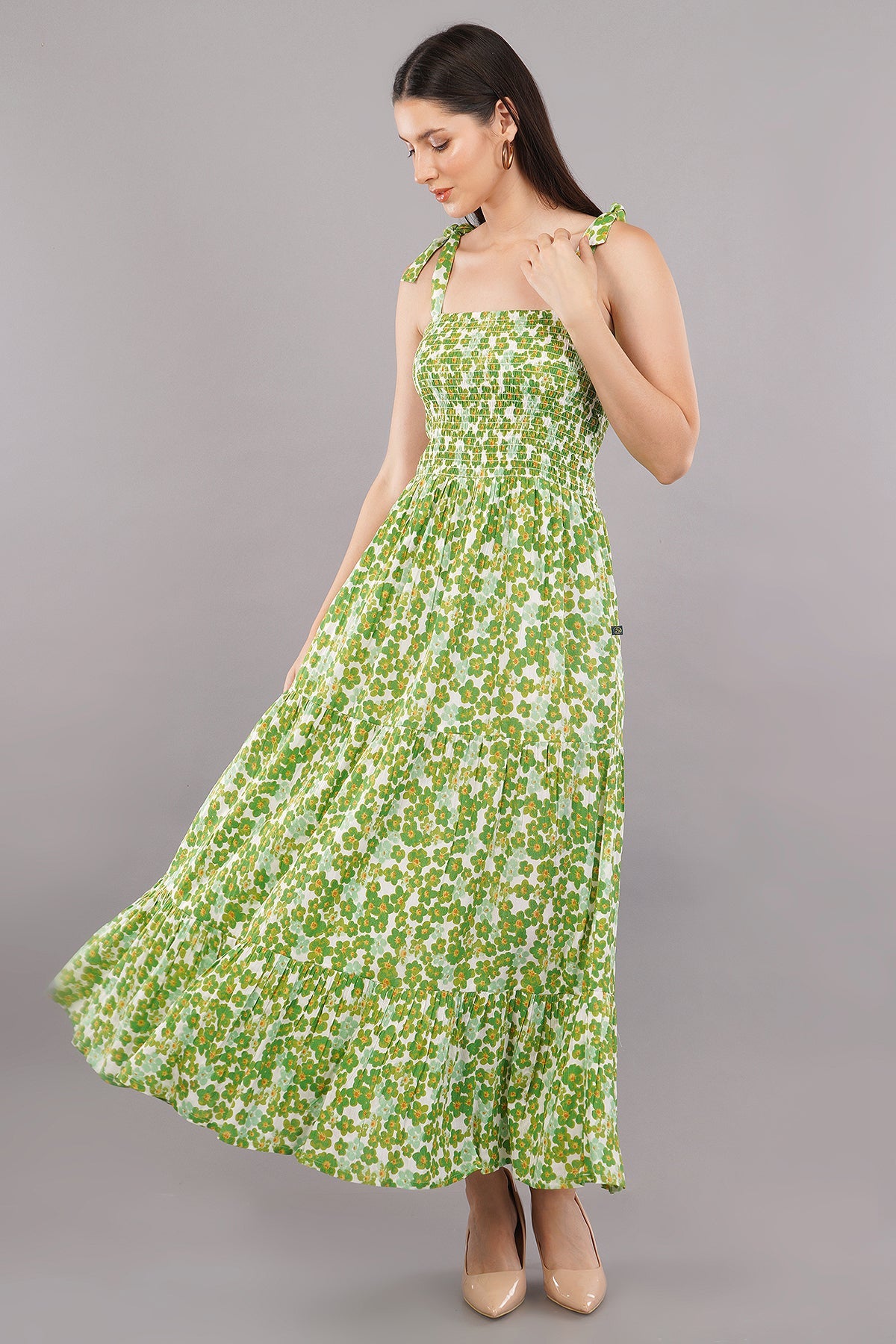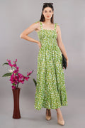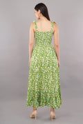 Printed Viscose Blend Square Neck Women's Midi Dress