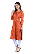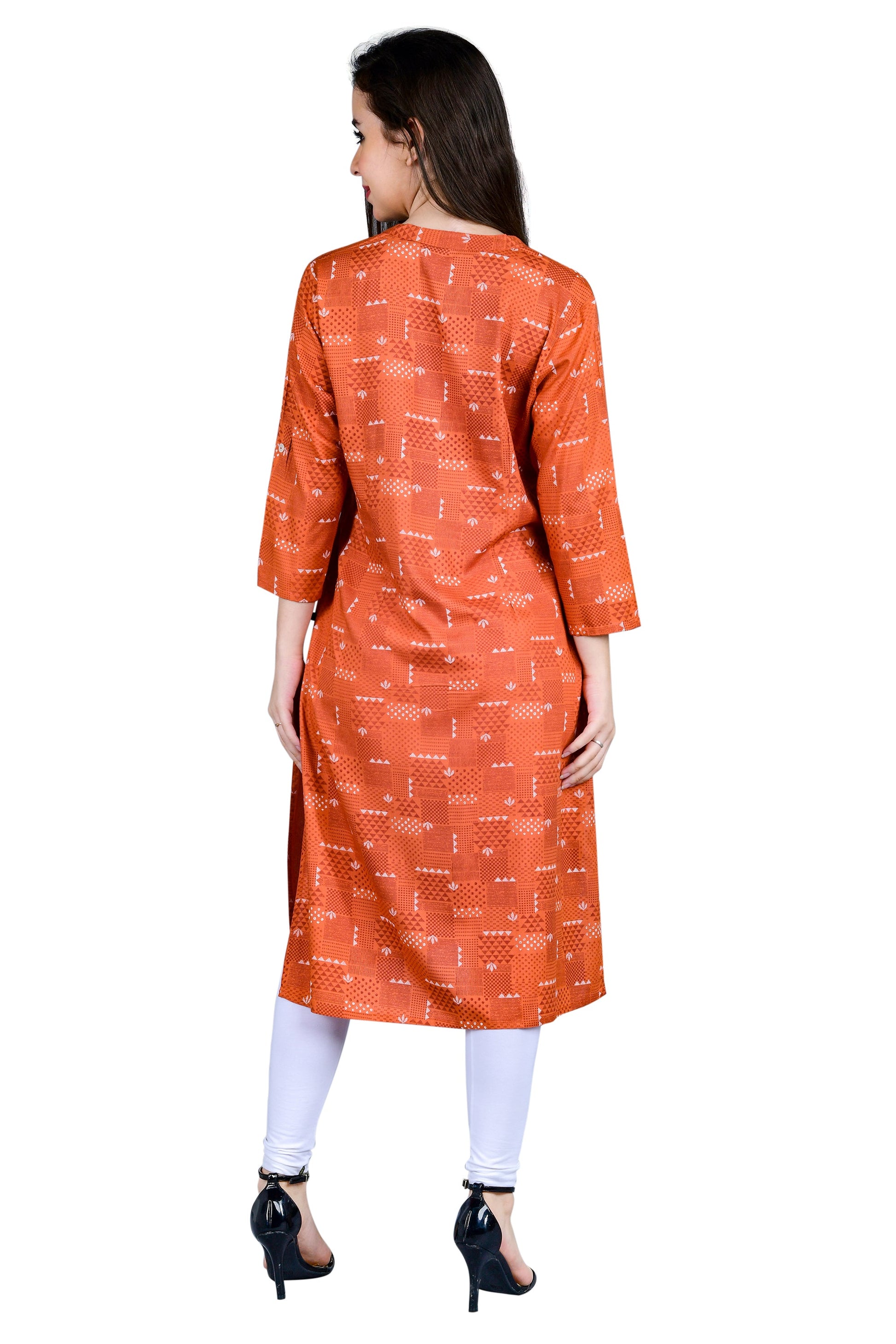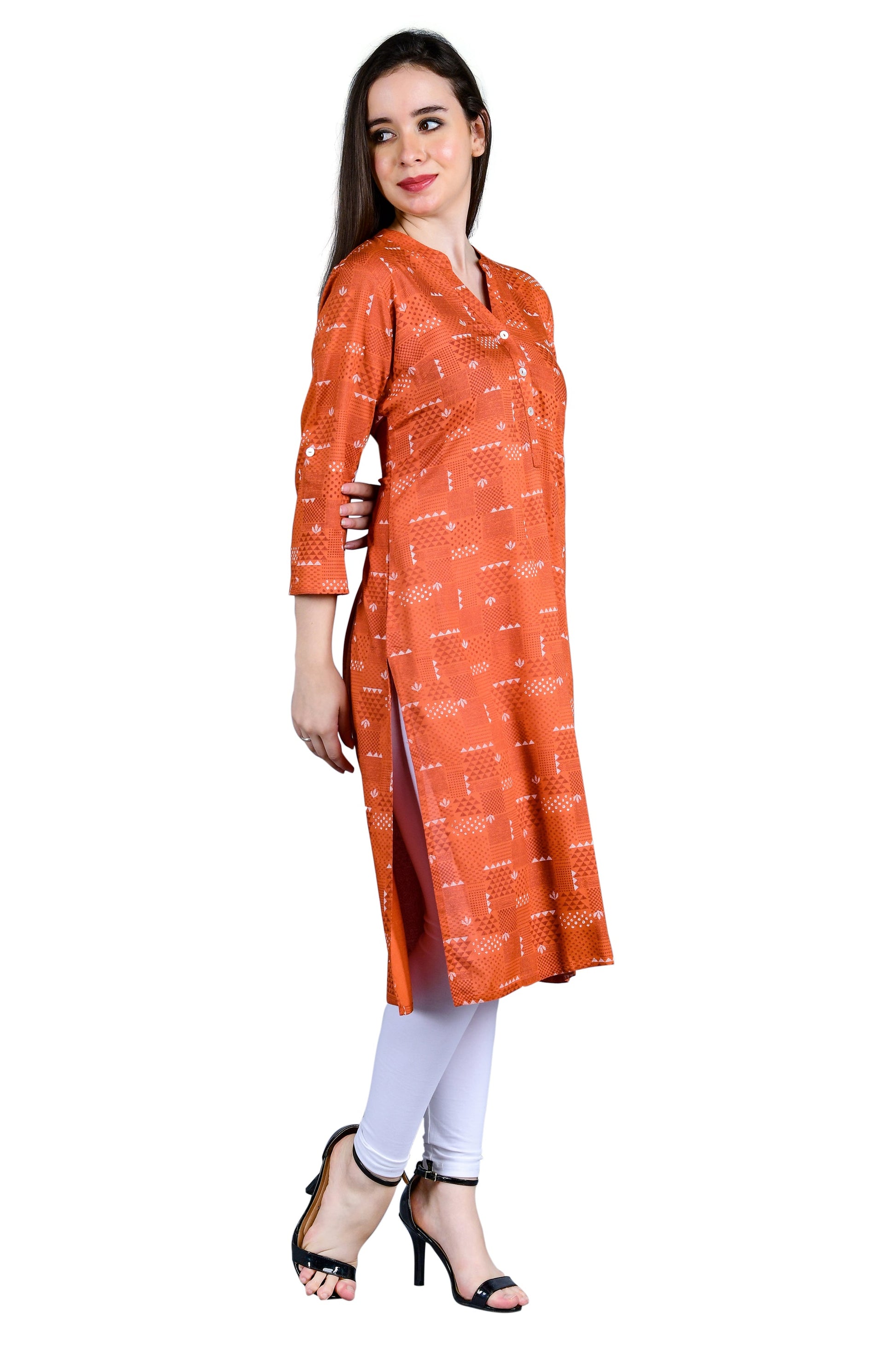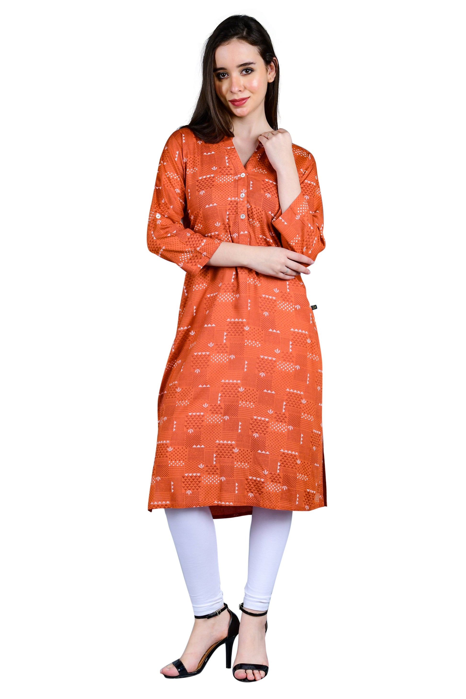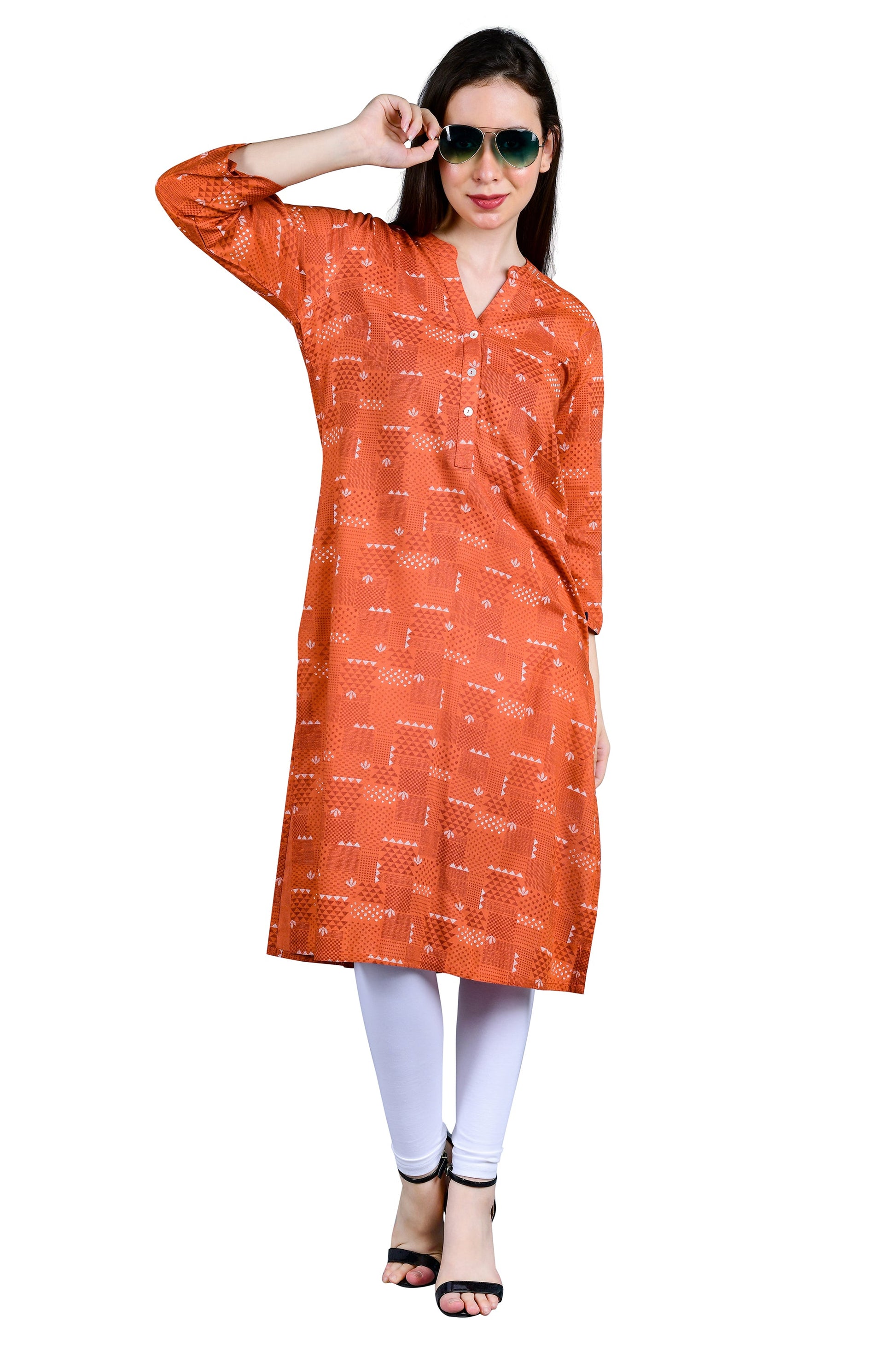 Red Print Casual Mandarin 3/4th Sleeves Knee Length Women Regular Fit Kurta