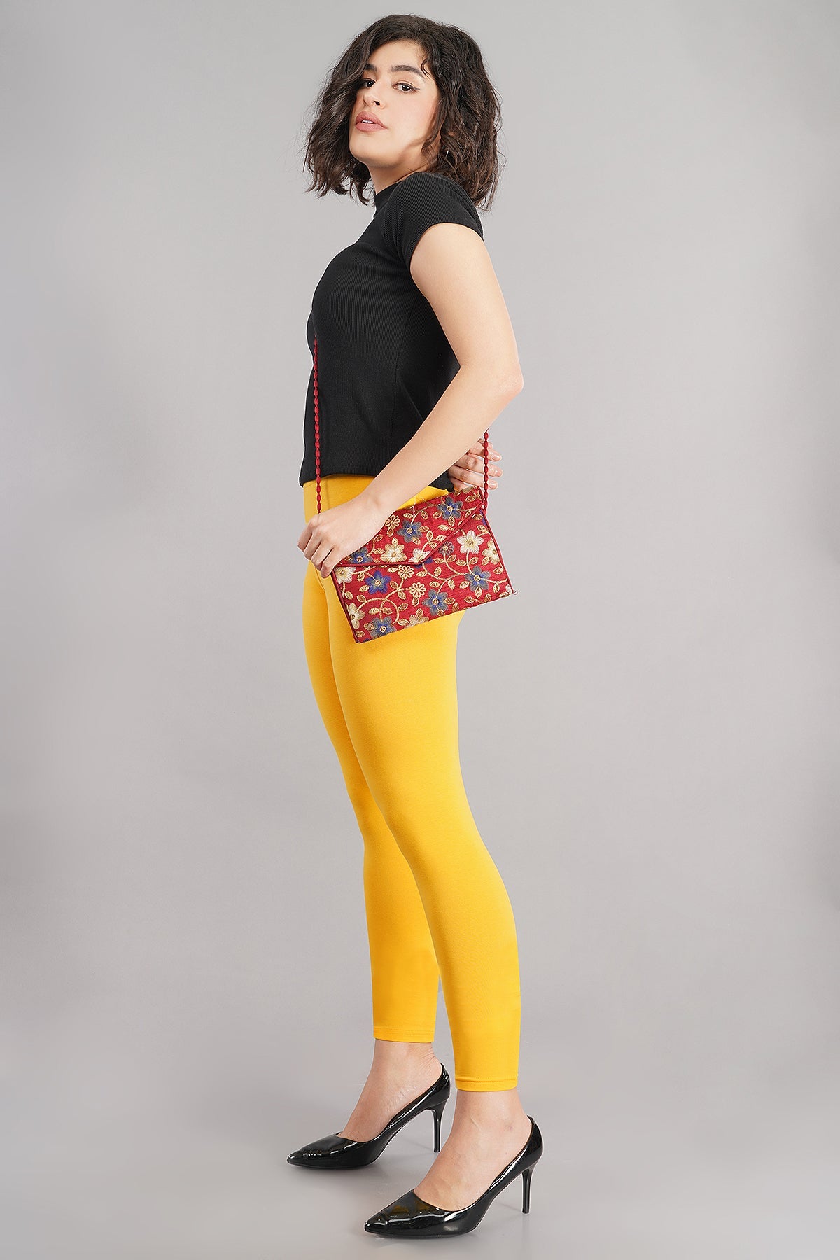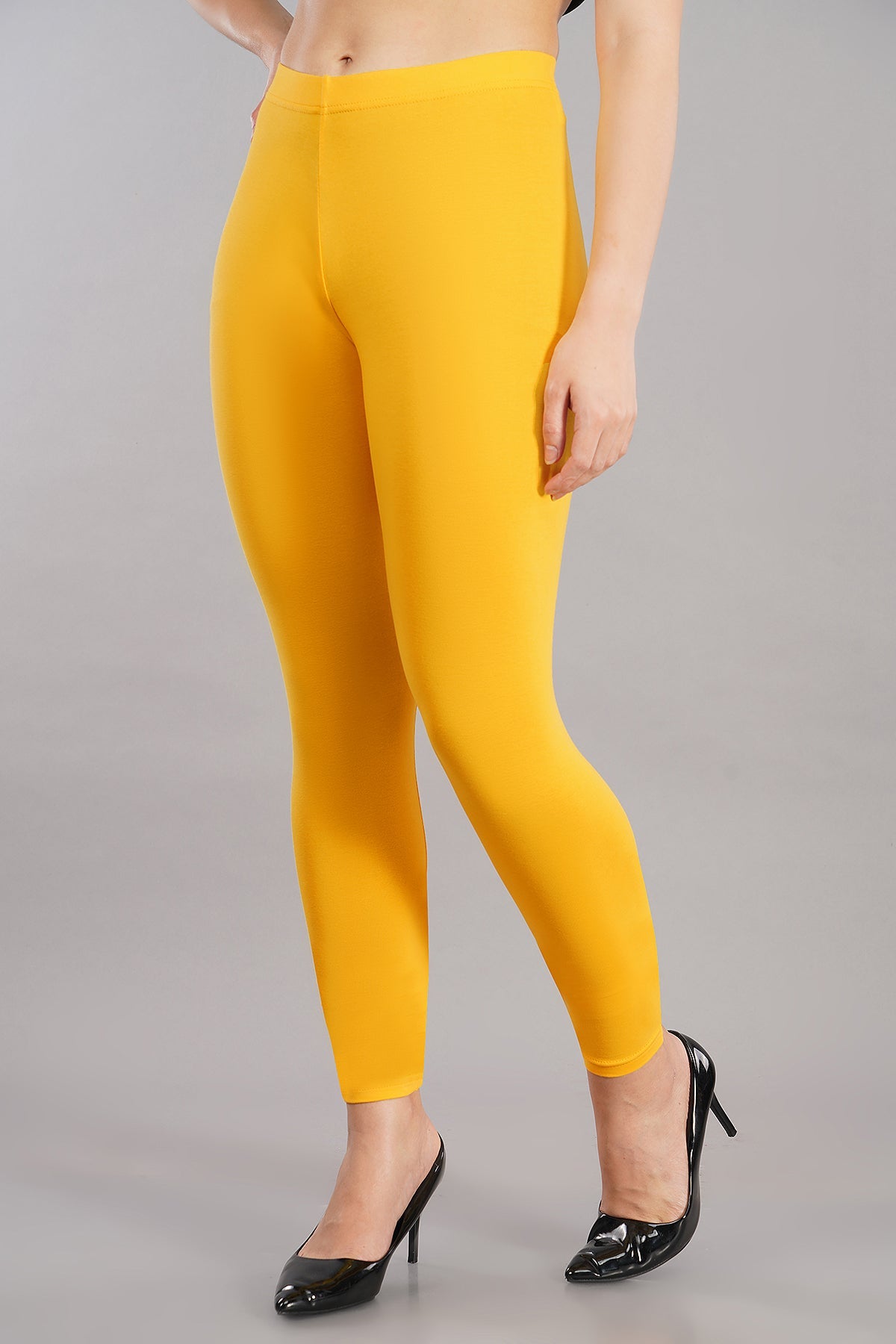 Shruthi Ankle Length Leggings with elasticated Waist || LIME YELLOW
