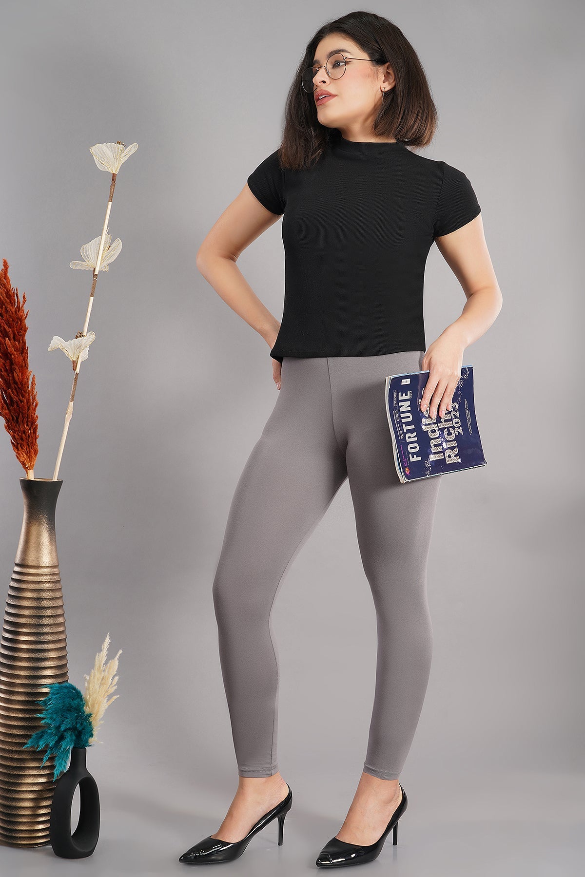 Shruthi Ankle Length Leggings with elasticated Waist||STEEL GREY